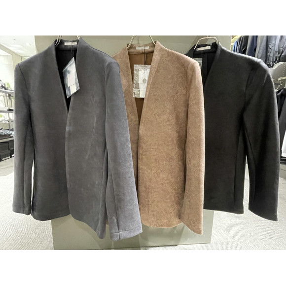 无色夹克采用了螺纹皮革般的高质量运动衫素材。