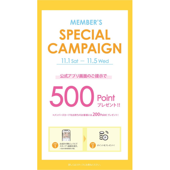 另外,用会员卡注册会员的客人在结账时也会出示卡,赠送200pt!