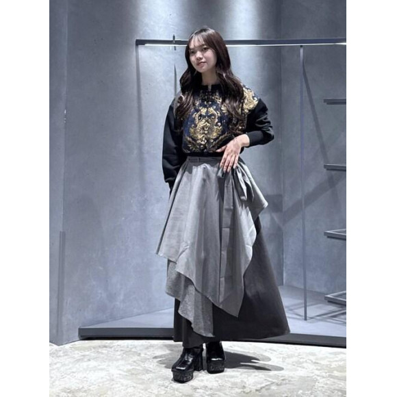 ⭐各项目的推荐点  ̄ ̄ ̄ ̄ ̄ ̄ ̄ ̄ ̄ ̄ ̄ ̄ ̄ ̄ ̄ ̄ ̄ 上装 □布帛和里毛的切换设计,以不太休闲的外观感进入模式 □袖子部分使用100%棉的里毛,穿着舒适,不管什么种类都容易搭配 □雅加德布料部分根据颜色不同花纹也不同 【底部】 □裙子看起来很高雅,因为褶皱设计而摇摆 □带腰带,用丝带扎起来或垂下来,可以改变印象 □不太厚、不太薄的面团,可以无季佩戴