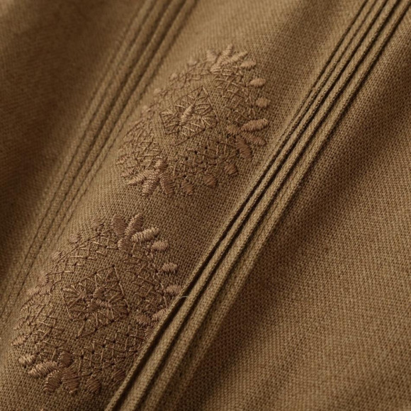 由亚麻和里昂混合而成的优质亚麻系列。 亚麻特有的自然风格,加上了里昂柔软的垂饰。 轻快肌肤远离良好的质感,在汗流浃背的季节也清爽舒适,最适合高温多湿的气候。 4个口袋、纤细的刺绣、精致的褶裙,充分再现了古巴衬衫本来的魅力。 洋溢着流行感的盒子轮廓,以悠闲的着装营造出脱颖而出和放松的氛围。 这是一张在寄宿着对原创的尊重的同时,将古典的氛围升华为摩登的一张。